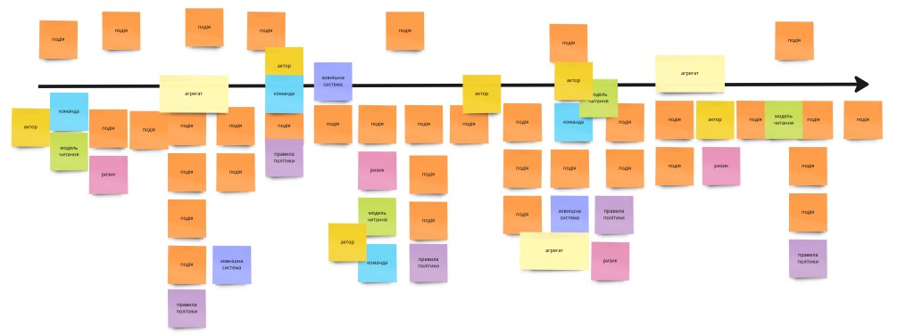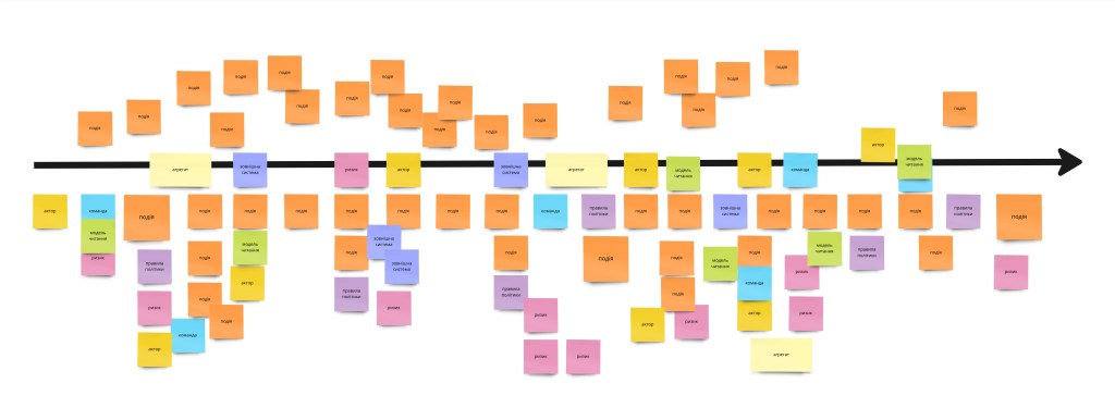 Важливо витримувати кольоровий код стікерів, це сильно спрощує читання моделі та структурує мислення. А от кількість сутностей, якими ви будете оперувати – на ваш розсуд, можете спершу спробувати лише події та акторів, а коли розіграється апетит, тоді розберетесь з рештою.