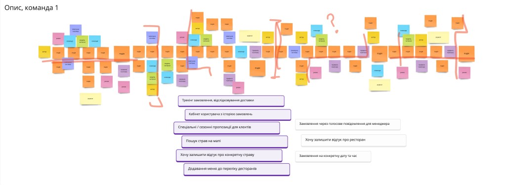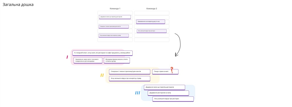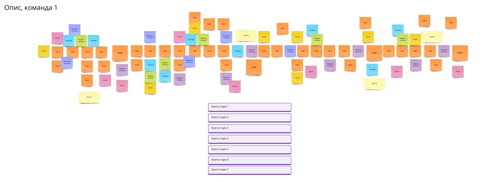 Краще, якщо у кожної команди для цієї вправи буде окрема дошка з візуалізацією системи та підготовлені стікери-плашки для запису прото-сторіків.